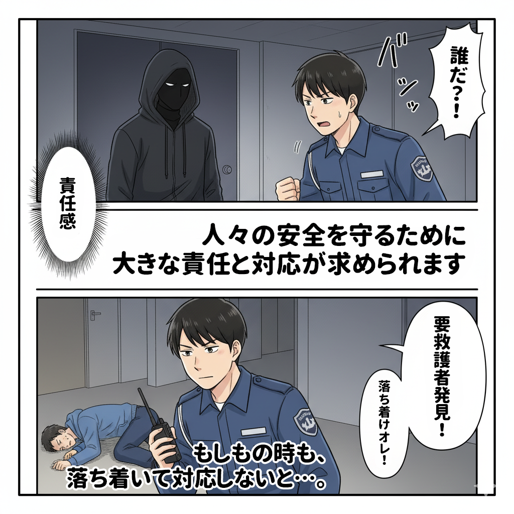 A:結論から言うと、施設警備の仕事は決して楽ではありません。![]() 施設警備の仕事に興味を持っている、京阪神やその周辺にお住いの方からよく聞かれる質問です。「施設警備って、のんびりしてて楽そうなイメージだけど、実際どうなの?」という疑問を抱えている方も多いのではないでしょうか。 結論から言うと、施設警備の仕事は決して楽ではありません。 「でも、座ってる時間も多いんでしょ?」と思われるかもしれません。しかし、楽な仕事と捉えてしまうと、きっとギャップを感じてしまうでしょう。 ・施設警備の仕事のしんどいところ![]() 施設警備の仕事は、一見すると地味に見えるかもしれませんが、実は精神的にも肉体的にも負担がかかる場面が多々あります。 長時間の立ち仕事や巡回業務: 施設にもよりますが、巡回ルートが広い場合は想像以上に体力を使います。また、立哨(立ち番)は長時間同じ場所に立ち続けるため、足腰に負担がかかります。 不規則な勤務体系: シフト制の勤務が多いため、日勤・夜勤など不規則な生活になりがちです。体調管理に気を配る必要があります。 責任の重さ: 警備員は、施設の安全・安心を守る責任を負っています。もし何かトラブルが起きたときには、落ち着いて適切な対応をしなければなりません。 緊急時の対応: 不審者への対応、設備の故障、急病人への一次対応など、緊急事態はいつ起こるかわかりません。常に緊張感を保ち、冷静に対応する判断力が求められます。 コミュニケーション能力: 施設利用者やお客様、関係業者の方々など、多くの人と接します。状況によっては、注意喚起やお願いをしなければならないこともあり、コミュニケーション能力も重要です。 ・施設警備の仕事の特徴は?施設警備の仕事は、「平穏無事を保つための仕事」と言い換えることができます。何も起こらないことが一番の成果であり、そのために私たちは日々、危険の芽を摘み、安心な環境を維持しています。 責任感が何よりも重要: 多くの人々の安全を守るという、社会貢献度の高い仕事です。責任感を持って業務にあたれる方が活躍できます。 ルーティンワークの中にも変化がある: 決まった時間に巡回や点検を行うことが多いですが、毎日同じことの繰り返しではありません。人や物の動き、設備の状況など、常に変化する環境の中で五感を働かせる必要があります。 専門性が高められる: 専門知識や資格を学ぶことで、キャリアアップが可能です。警備業務検定や防災管理、応急手当など、身につけたスキルは一生の財産になります。 ・施設警備の仕事はどんな人に合っている?![]() では、施設警備の仕事はどんな人に向いているのでしょうか? 責任感の強い人: 自分の仕事に誇りを持ち、真面目に取り組める方。 観察力がある人: 些細な変化にも気づき、異常の兆候を見つけられる方。 冷静な判断力がある人: 緊急時にも慌てず、適切な行動を取れる方。 体力に自信がある人: 長時間の立ち仕事や夜勤にも対応できる体力がある方。 京阪神やその周辺地域で、責任感を持って仕事に取り組みたいと考えている方にとって、警備の仕事は非常にやりがいのある選択肢となるでしょう。 ・まとめプラスワン株式会社では、未経験の方でも安心してスタートできるような研修制度を整えています。専門性を高めたい、社会に貢献したいという熱意のある方からのご応募をお待ちしています! |