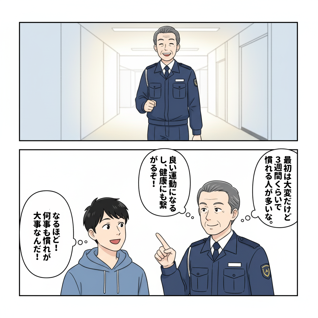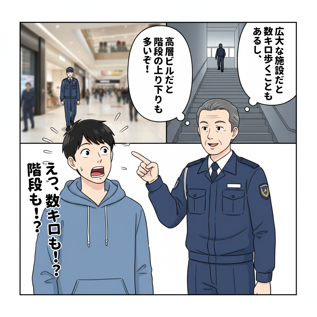 A:結論から言うと、巡回する距離は施設によってさまざまですが、決して楽な仕事ではありません。![]() 「施設警備の仕事って座ってるイメージだけど、巡回ってどれくらい歩くの?」と気になっている、京阪神やその周辺にお住まいの方も多いのではないでしょうか。 結論から言うと、巡回する距離は施設によってさまざまですが、決して楽な仕事ではありません。 施設警備の仕事は、体力を必要とすることが多いのです。 ・巡回距離は想像以上![]() 警備員が巡回する距離は、担当する施設の規模に大きく左右されます。 広大な施設では数キロメートルも: 広大な敷地を持つ商業施設や工場、大学、病院などでは、一度の巡回で数キロメートル歩くことも珍しくありません。ただ歩くだけでなく、周囲の状況に常に気を配りながら歩くため、精神的な集中力も必要になります。 階段での移動も: 20階建て以上の高層ビルでは、階段を使って各階を巡回する場合があります。エレベーターが使えない時間帯や非常時、設備点検などで階段を何度も上り下りすることもあるため、かなりの運動量になります。 ・「慣れ」が鍵となる体力仕事![]() 「想像以上に体力を使うの?」と不安に感じたかもしれません。しかし、多くの先輩警備員がこう言います。 「こんなに長い距離を巡回するとは思ってなかった。最初はしんどくて辞めようかと思ったけど、3週間ぐらい頑張ってたら慣れたんですよね。今では良い運動になってます!」 最初は大変に感じるかもしれませんが、体を動かすことに慣れてくると、日々の健康づくりにも繋がります。 ・長時間歩く巡回に向いているのはどんな人?![]() 巡回業務は、体力や忍耐力が必要なため、以下のような人に向いています。 体力に自信のある人: 日頃から体を動かすことが好きな人や、運動習慣のある人は巡回業務を苦に感じにくいでしょう。 責任感の強い人: 施設の安全を守るという使命感を持って、最後まで業務をやり遂げられる人。 注意力が高い人: 巡回中に些細な異変や不審な点に気づける観察力がある人。 京阪神やその周辺地域で、体を動かしながら社会に貢献したいと考えている方は、ぜひ警備の仕事も視野に入れてみてください。 ・まとめプラスワン株式会社では、未経験の方でも安心して警備の仕事を始められるよう、丁寧な研修制度を整えています。ご自身の体力を活かして、人々の安心・安全を守る仕事に挑戦してみませんか?ご応募を心よりお待ちしております! |